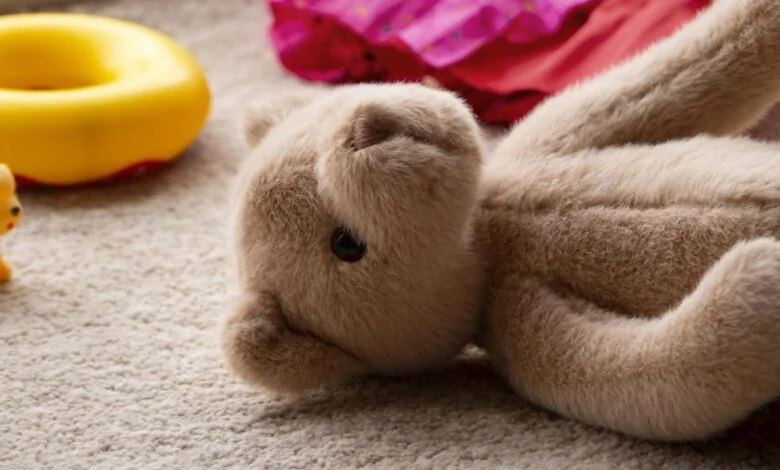 Boneka beruang kesayangannya, yang dia namai Mr. Buttons, terkena saus spaghetti paling parah. Noda merah di dadanya terlihat seperti luka fatal.