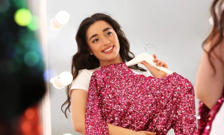 Gaun-gaun dipajang di luar toko di mal | Sumber: Pexels