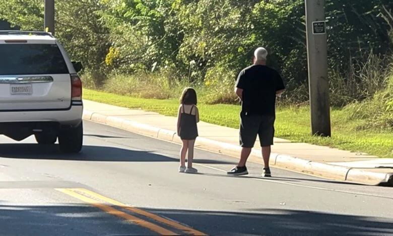Seorang pria berdiri dengan seorang gadis kecil di tepi jalan | Sumber: Midjourney