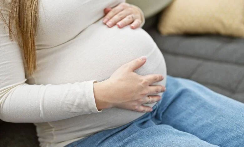 Seorang wanita hamil yang cantik duduk di sofa | Sumber: Midjourney