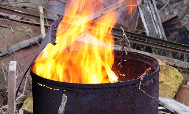 Api unggun dalam wadah logam di halaman belakang | Sumber: Midjourney