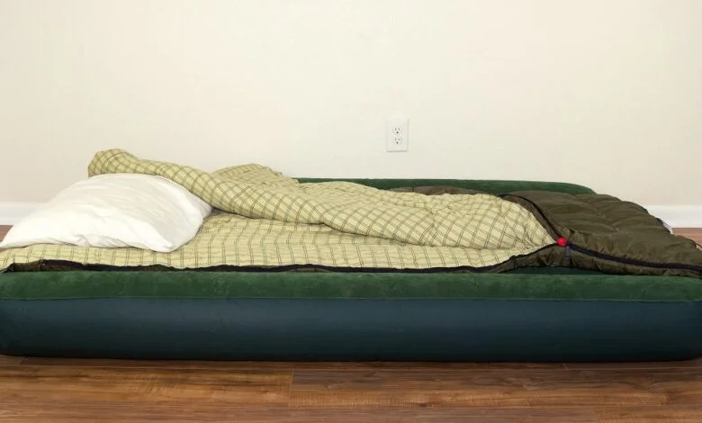Matanya menyempit saat melihat kasur udara di bawah lenganku. “Untuk apa itu?”