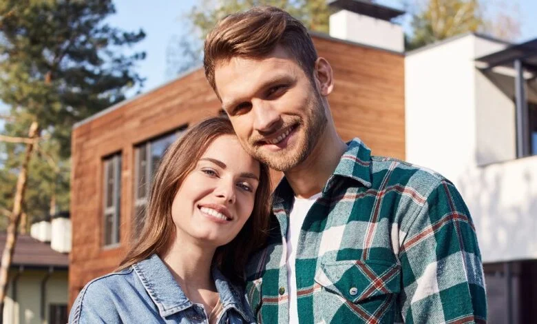 Pasangan bahagia di depan rumah | Sumber: Midjourney