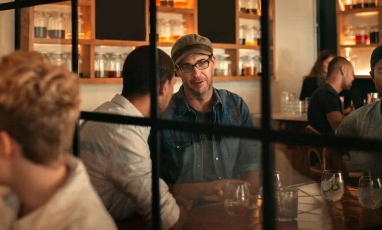 Seorang pria duduk di samping temannya di restoran | Sumber: Midjourney