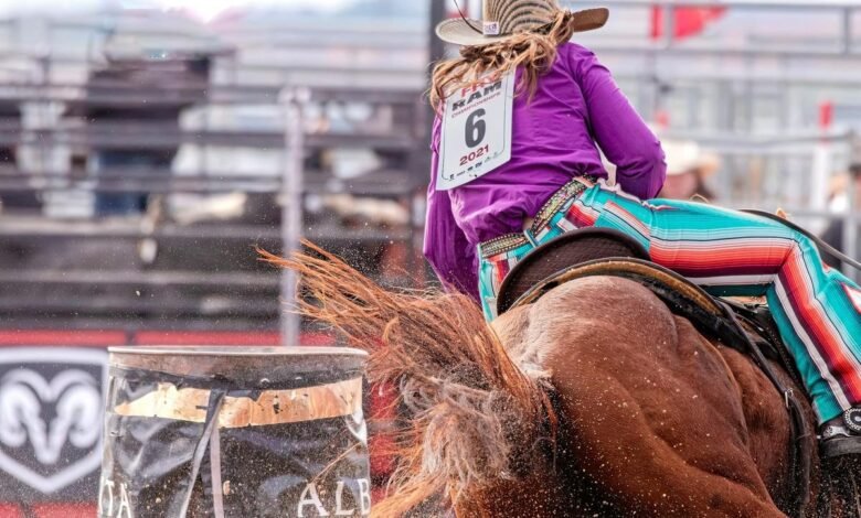 Seorang wanita menunggang kuda memasuki arena | Sumber: Midjourney