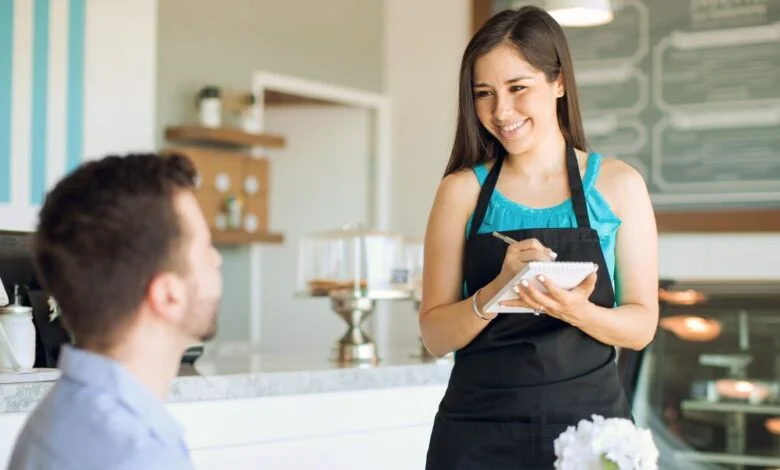 Seorang pelayan tertawa bersama pelanggan di bar | Sumber: Midjourney